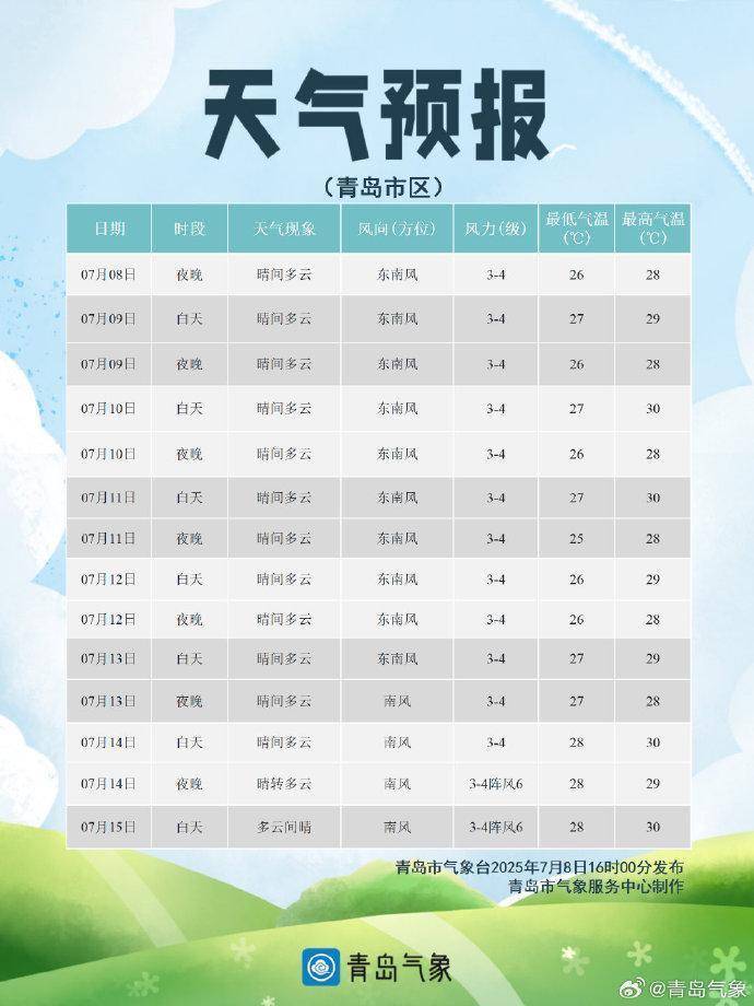 辉立配资 7月9日至7月11日三天 青岛市持续晴间多云天气