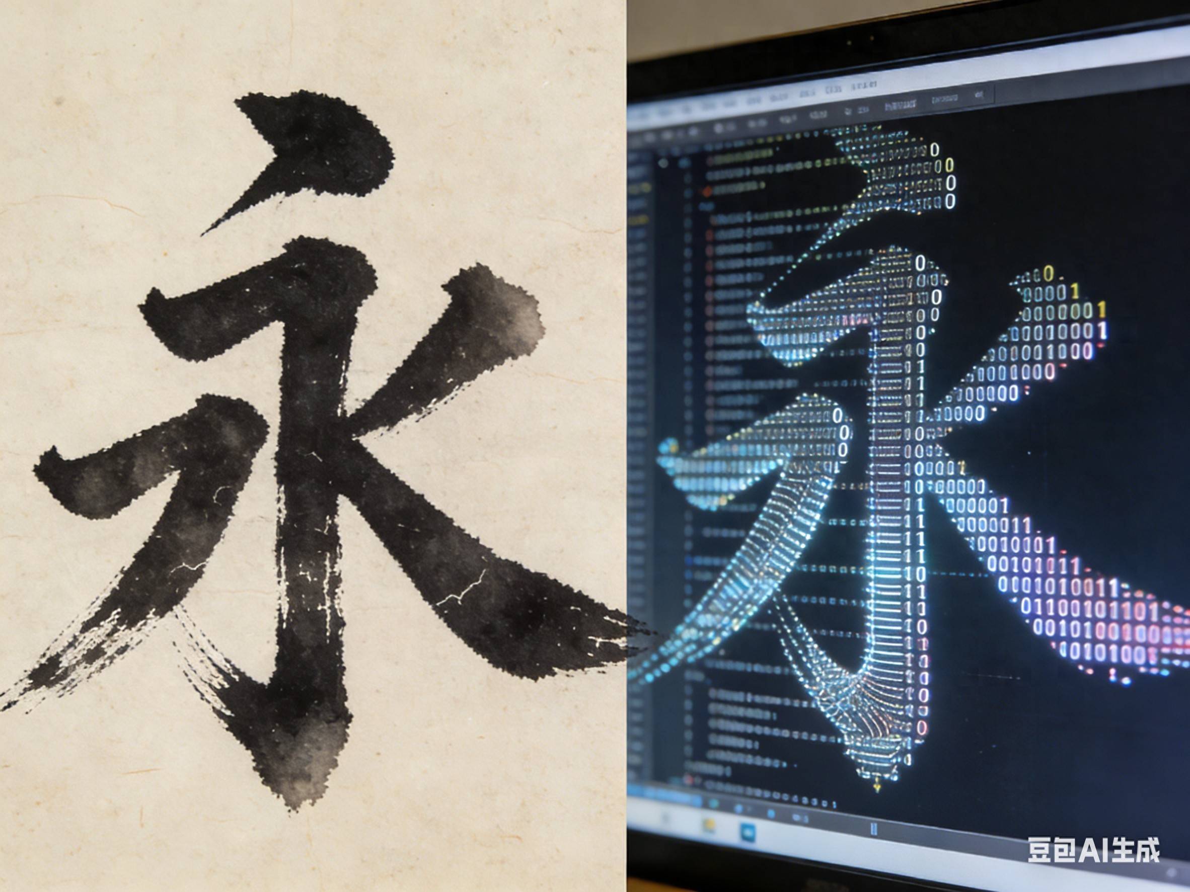 咱们现在啊,就试着把这种只可意会不可言传的“神韵”,用最理性的二进制数字,给它转换成能看得见的画面。这么做,可不是为了给大家解释清楚这其中的道理,而是想让大家看到一件特别有意思的事儿:不管是拿毛笔写字,还是用键盘打字,咱们人类啊,其实都是在用自己这个时代的“独特代码”,想尽一切办法,去创造出有秩序、有美感、还有意义的东西。你说,这是不是挺有意思的?