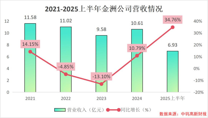 2025年上半年,“切削刀具及工具”板块收入同比增长8.25%,其中金洲公司营收6.93亿元,同比增长34.76%,是拉动增长的核心引擎。