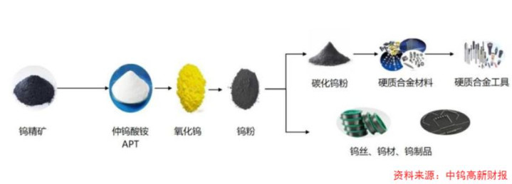 与厦门钨业“钨钼+稀土+能源新材料”三大业务并行不同,中钨高新专注于打造采选、冶炼、加工于一体的完整钨产业链。